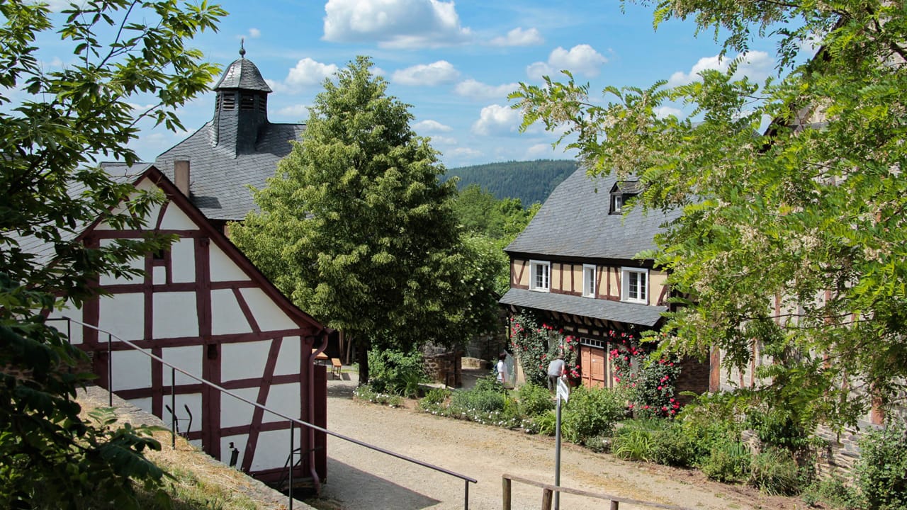 Lecker essen? Dann fahre noch ein Stück in die Eifel rein, bis zum Landgasthof Pyrmonter Mühle in Roes. Hier erwarten dich eine traumhafte Außenterrasse – und eine leckere, traditionelle Küche mit modernen Interpretationen und regionalen Zutaten. Auch als Vegetarier*in musst du hier nicht verhungern. Eine Reservierung ist erforderlich. Von hier aus kannst du den Pyrmonter Felsensteig erwandern (11,5 Kilometer, die 2015 zu Deutschlands schönstem Wanderweg gewählt wurden) oder die Burg erkunden.