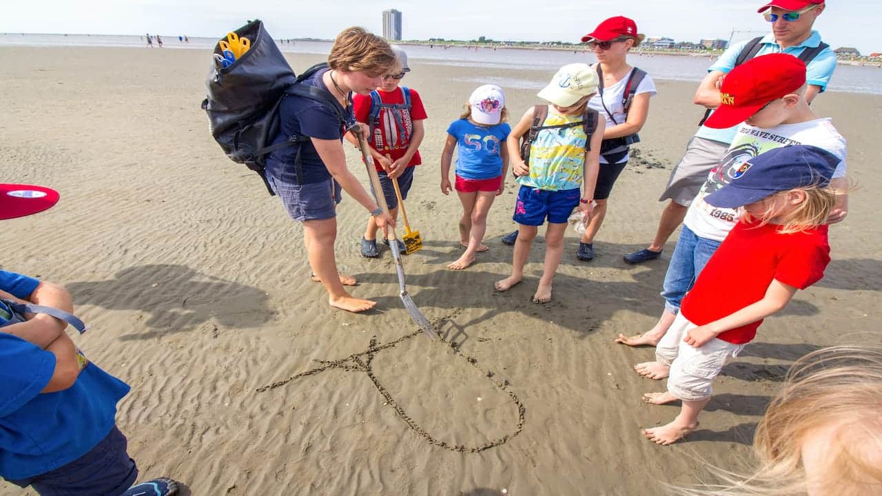 Das Wattenmeer, ein großer Abenteuerspielplatz für Kinder mitten in der Natur, das sich in nahezu allen Regionen an der Nordseeküste auf einer geführten Wattwanderung mit einem Watt- und Gästeführer erkunden lässt, ist charakteristisch für die Nordsee. Im Wandel der Gezeiten haben hier viele Tier- und Pflanzenarten ihr Zuhause. Im Erlebniszentrum Mensch und Watt kannst du auf einer der 20 Stationen viel über das Wattenmeer als Lebensraum für Tiere und Pflanzen lernen.