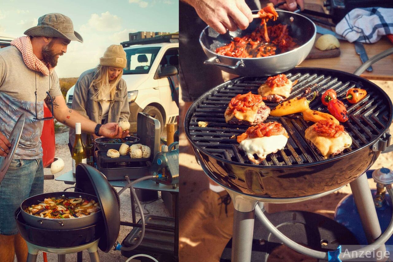 Heute stellen wir dir ein echtes Multitalent für die Campingküche vor: den Carri Chef 40 von CADAC. Auf diesem leichtgewichtigen, tragbaren Camping-Gasgrill mit Hochleistungsbrenner bereitest du mühelos Fleisch, Geflügel, Fisch, Gemüse und sogar Suppen, Eintöpfe, Pfannen- und Eierspeisen oder Pizza zu. Dank des umfangreichen Zubehörs und der großen Grillaufsätze kannst du mit dem Carri Chef 6-8 Personen mit den unterschiedlichsten Leckereien versorgen.