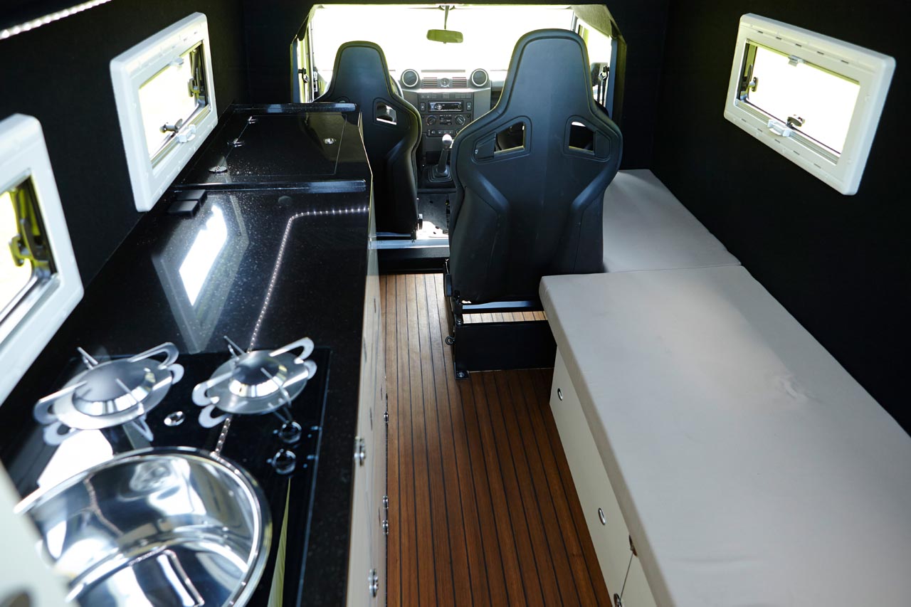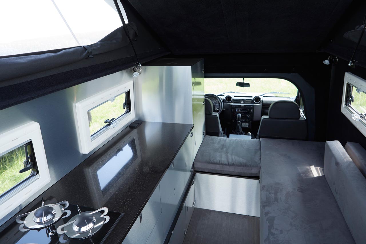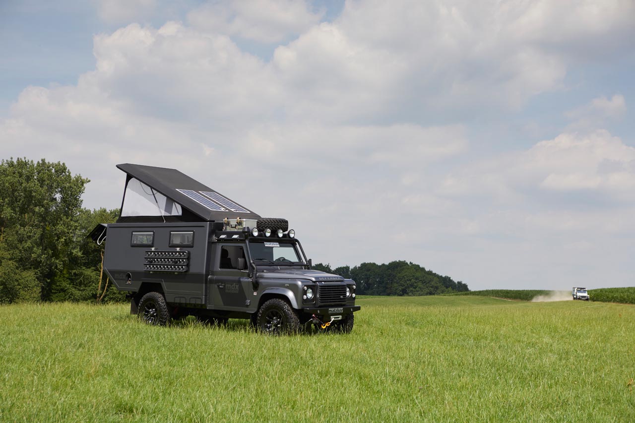 Enge, gewundene Straßen, Mittagshitze – und dann sitzt man in einem klobigen Camper, der sich mit der Geschwindigkeit eines Gletschers den Berg hinaufschiebt. Diesem Szenario fährt der Besitzer eines mdx Expeditionsmobils lächelnd davon. „Der mdx hat die uneingeschränkte Leistungsfähigkeit eines Land Rover Defender, sowohl auf der Straße als auch in schwerem Gelände“, erklärt Matzker. Das Basismodell 110 kommt mit einem 2,2-Liter-Td4-Motor daher und bringt 122 PS Leistung.