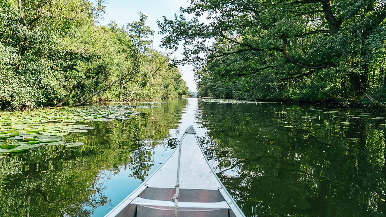 Nun stehen die letzten Kilometer unserer Tour an und wir nehmen die Umgebung mit vollen Zügen in uns auf. Unsere Route führt uns nun durch die verwunschenen Kanäle der Schwaanhavel, welche als eines der Highlights der Mecklenburgischen Seenplatte gelten. Auch wir lieben die engen Kanäle, sowie die Wildnis die hier herrscht.