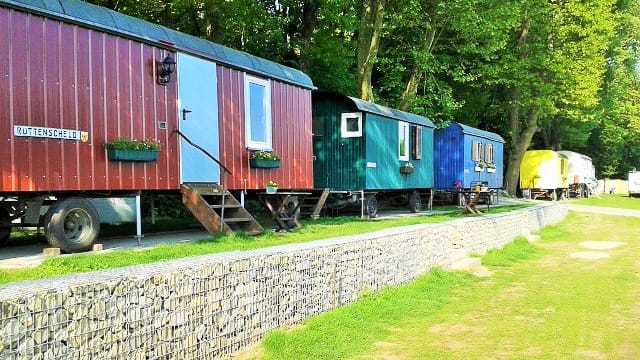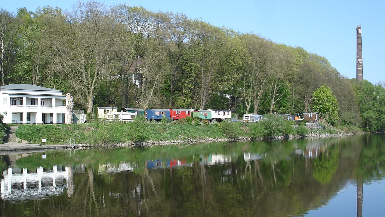 Kein klassischer Campingplatz, sondern ein originelles Bauwagenhotel, bei dem jede Unterkunft nach einem Essener Stadtteil benannt wurde – mit einigen wenigen Stellplätzen für Camper.