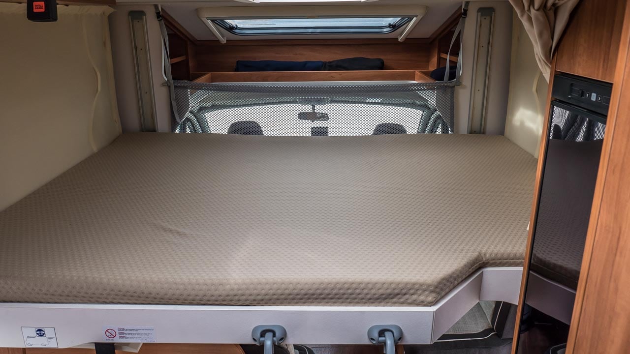 Einen hohen Marktanteil besitzen in Deutschland nach wie vor die Alkoven-Wohnmobile. Ihre Besonderheit liegt darin, dass sie Platz für gleich zwei Doppelbetten bieten. Das eine befindet sich typischerweise im Alkoven, der charakteristischen “Haube” über dem Fahrerhaus. Hier können zwei weitere Personen nächtigen, allerdings mit einer etwas geringeren Raumhöhe – was für Klaustrophobiker nicht so angenehm ist.