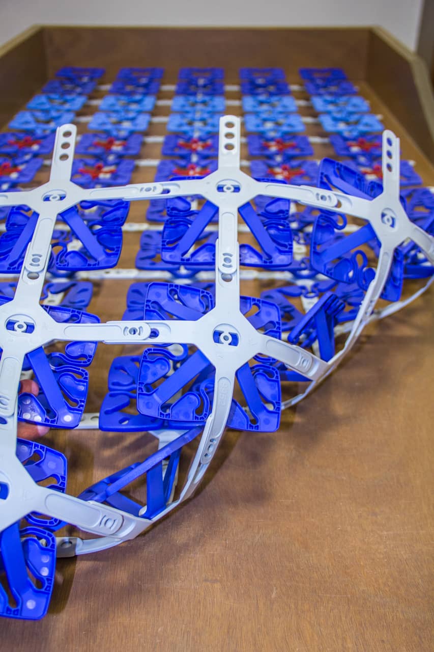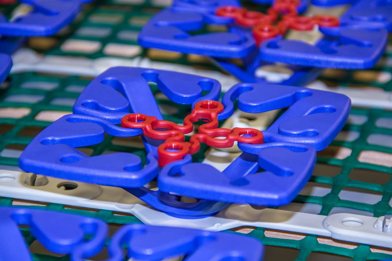 Egal für welches Bettsystem du dich entscheidest, der Aufbau ist der gleiche: einzelne Fußkreuze werden zu einer Matte verklipst und die Federelemente aufgesteckt. Dies erfolgt entweder direkt auf einem festen Untergrund oder mit Hilfe eines Auflagegitters. Mit Letzterem können die Bettsysteme von Froli beispielsweise auch auf fest montierten Lattenrosten nachgerüstet werden.