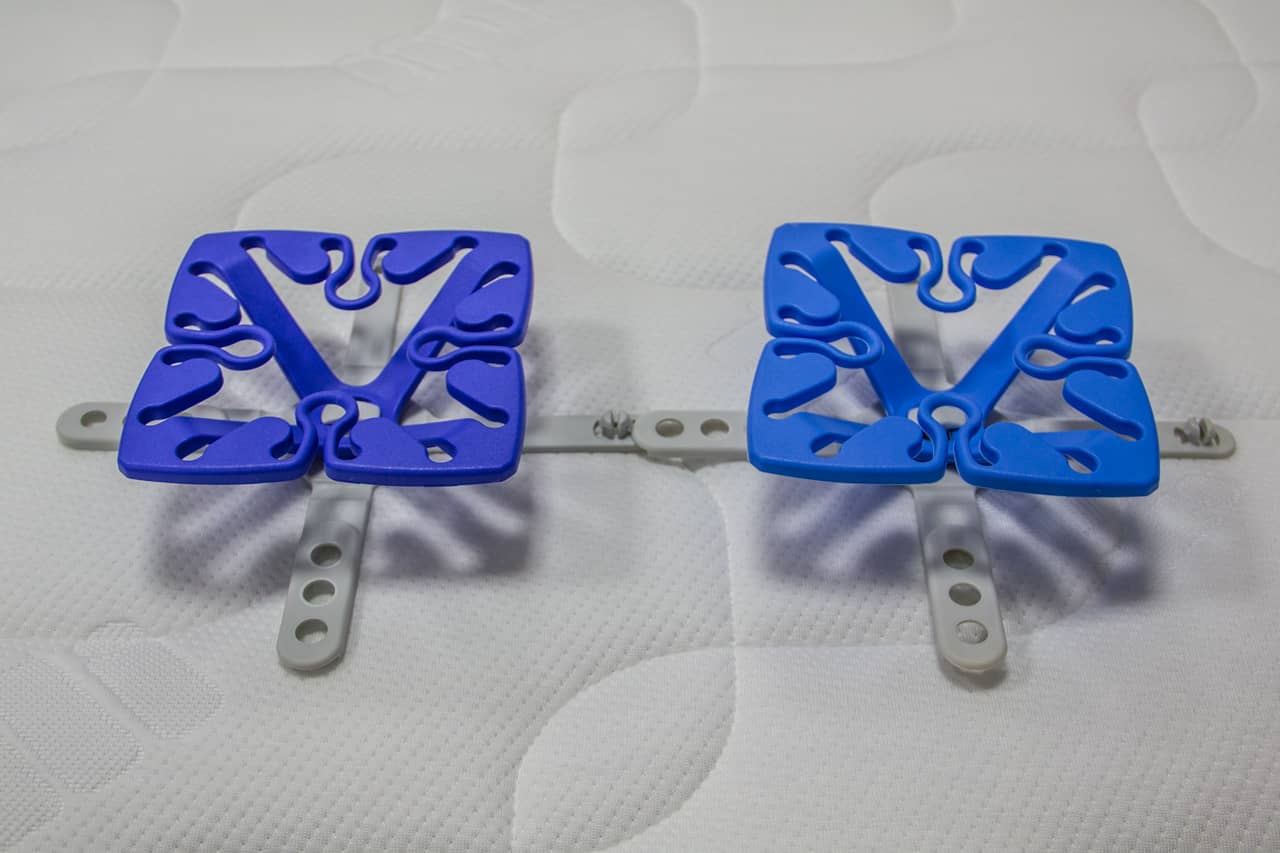 Nun sind wir also einen großen Schritt weiter auf unserem Weg zum perfekten Schlaf. Schon alleine, dass plötzlich kein „Hügel“ mehr in der Mitte war und wir gefühlt zu den Seiten herunterrollten, war eine wahre Wohltat. Zudem tun die Froli-Zona-Mobil-Federelemente genau das, was sie sollen: abfedern. Momentan sind alle Elemente gleich. Sollten wir feststellen, dass wir im Schulter- oder Hüftbereich zusätzliche Unterstützung brauchen, haben wir die Möglichkeit Lordosestützen einzubauen. Das gibt uns mehr Stabilität in den jeweiligen Bereichen.