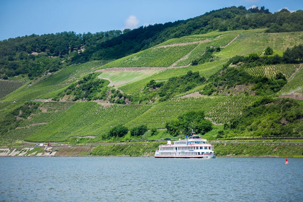 Für mich gehört eine Schifffahrt auf diesem Abschnitt des Rheins auf jeden Fall dazu. Vom Wasser aus wirkt die Landschaft noch einmal ganz anders. Bei einer Schiffstour kannst sie ganz entspannt auf dich wirken lassen, ohne dich selber aufs Fahren oder etwas anderes konzentrieren zu müssen. Koblenz, Bingen, Bonn. - Wein, Wein und noch mehr Wein